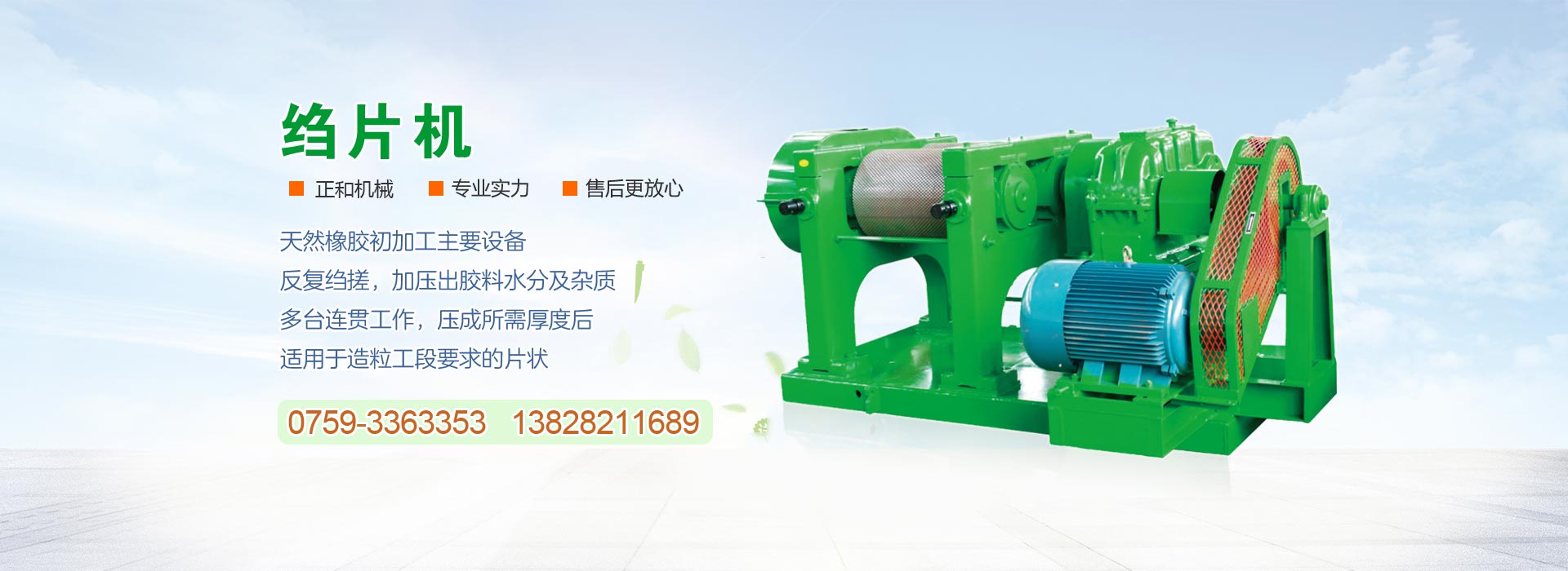 農業機械設備廣東正和機械公司產品主要有縐片機,碎膠機,破膠機,打包機,甘蔗翻板機,壓榨機,無濾布真空吸濾機